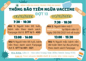 Bệnh viện ĐKTT An Giang thông báo lịch tiêm ngừa covid-19 đợt 10