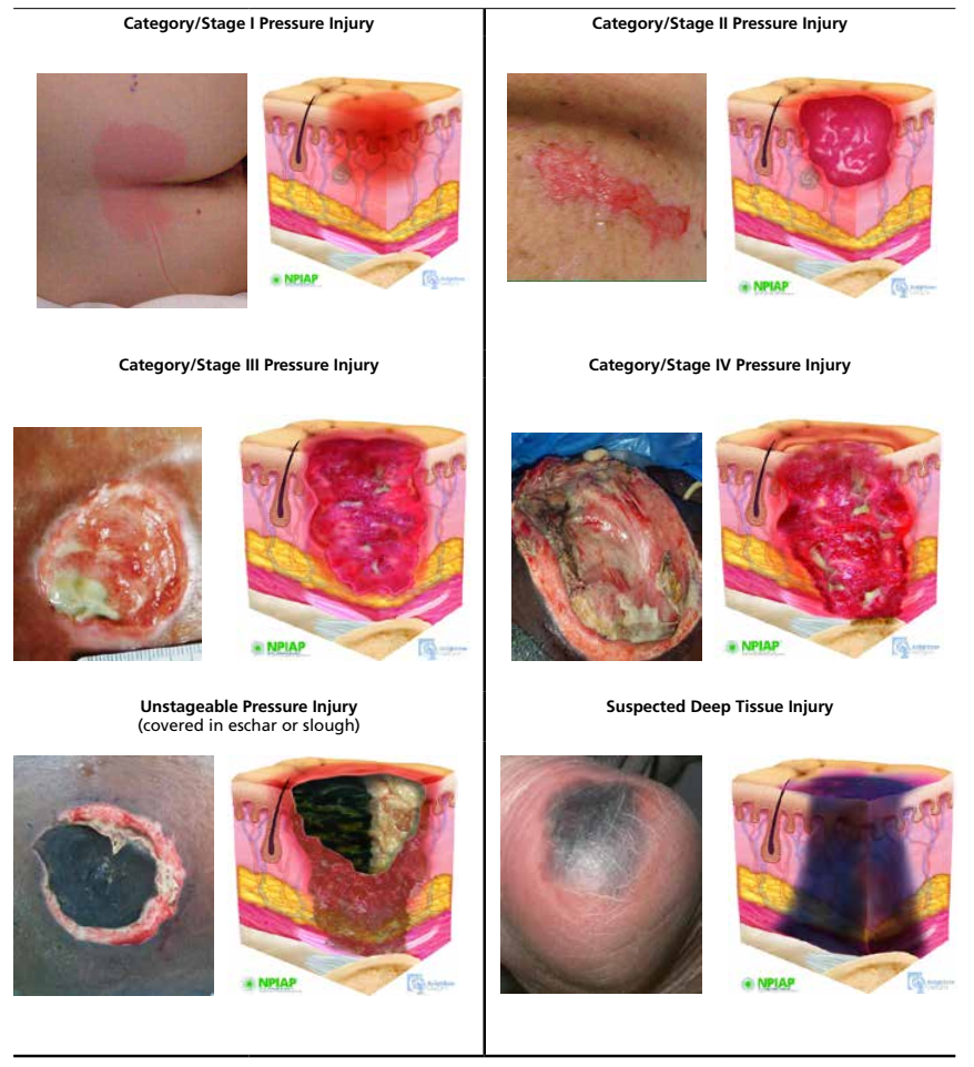- Social factors and factors related to the individual (Các yếu tố môi trường) Các yếu tố phức tạp liên quan đến môi trường, trạng thái tâm lý, giấc ngủ, dinh dưỡng kiến thức và giáo dục cũng như hỗ trợ xã hội của cá nhân cũng ảnh hưởng đến việc phòng ngừa và điều trị tổn thương do áp lực.
