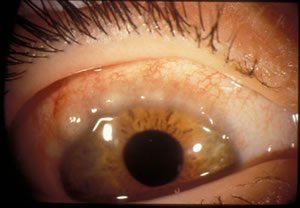 - Tùy mức độ nặng, có thể ảnh hưởng tròng đen (giác mạc) từ xói mòn biểu mô, đến loét dạng mảng, và thậm chí sẹo giác mạc.